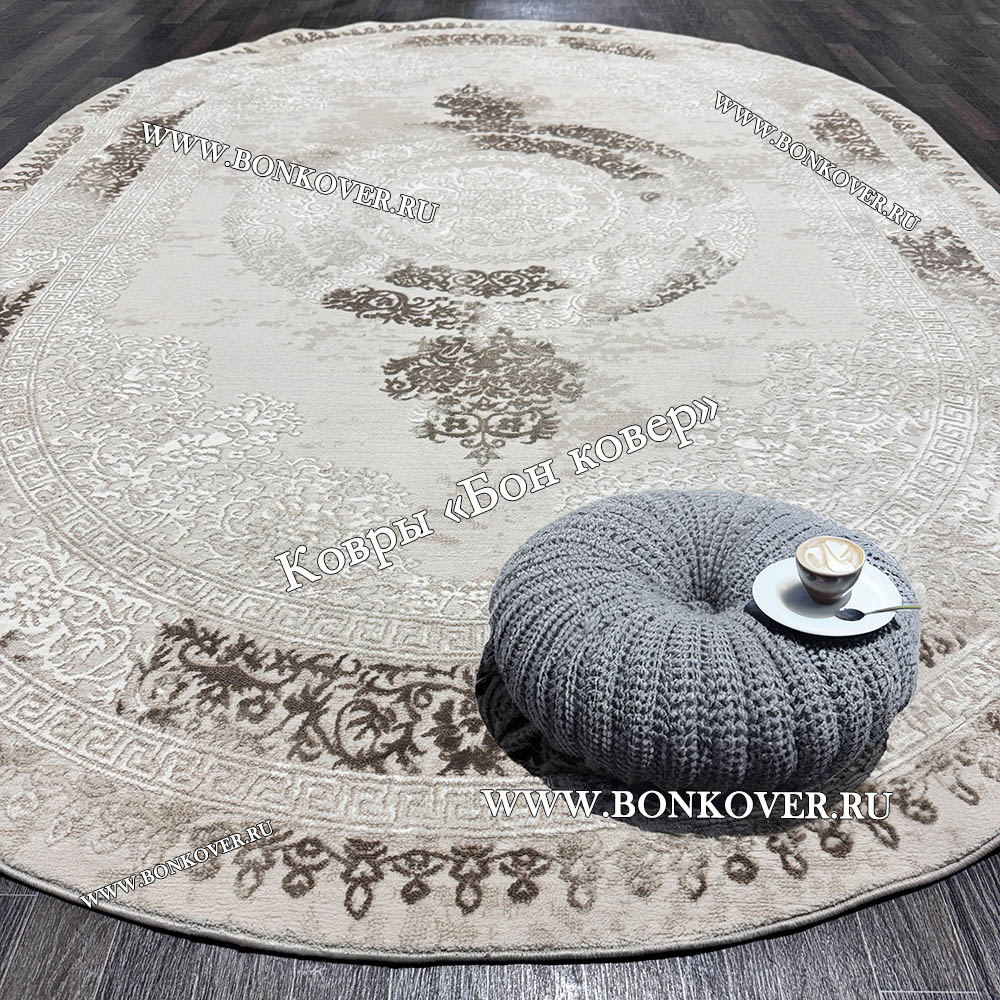 Турецкий Ковер Для Гостиной Дизайн 46 Бежево-Коричневый Круг